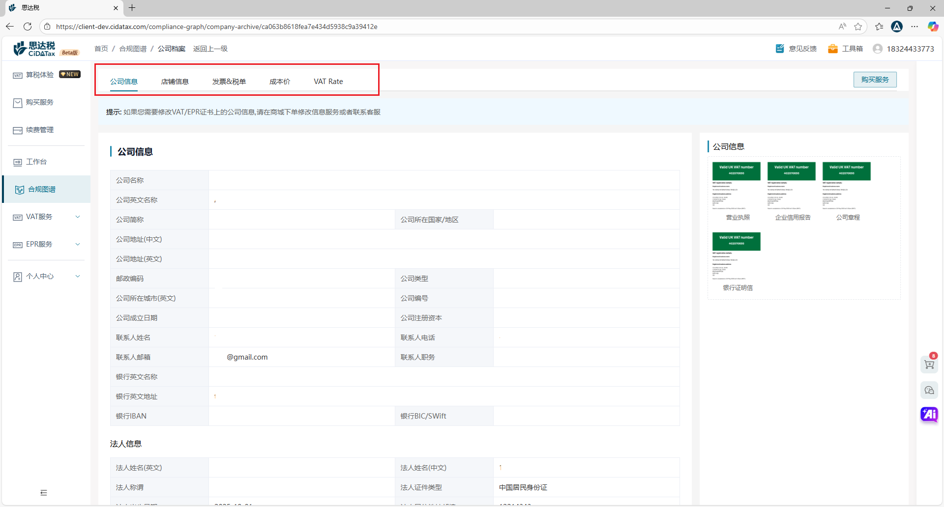 点击公司列表中的某一个公司名称,打开“公司档案”页面,包含: