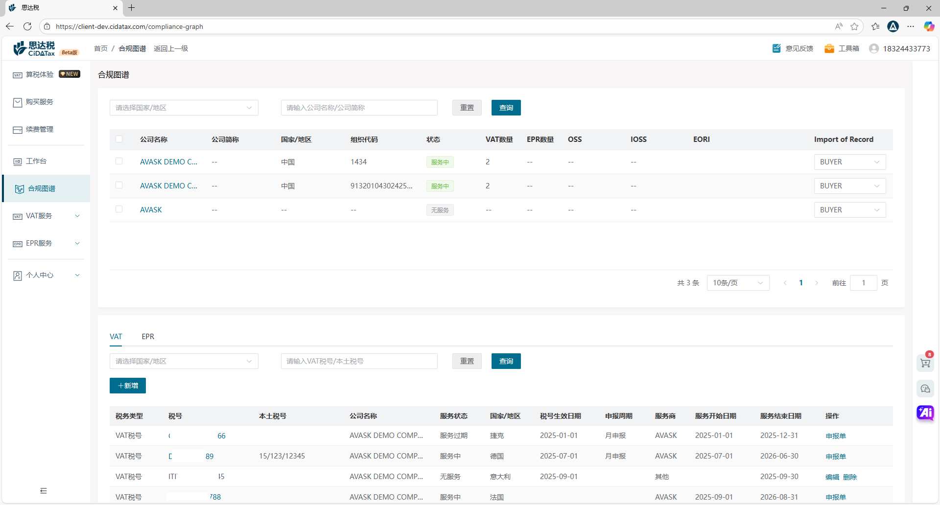 • 不同公司对应的合规信息:VAT税号、EPR注册号等;