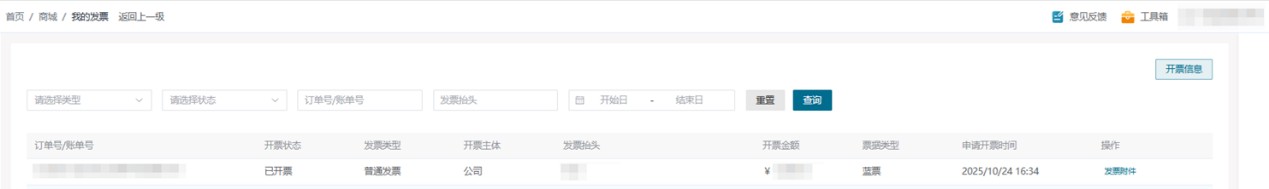 已开票完成后,可在此下载为您开具的发票